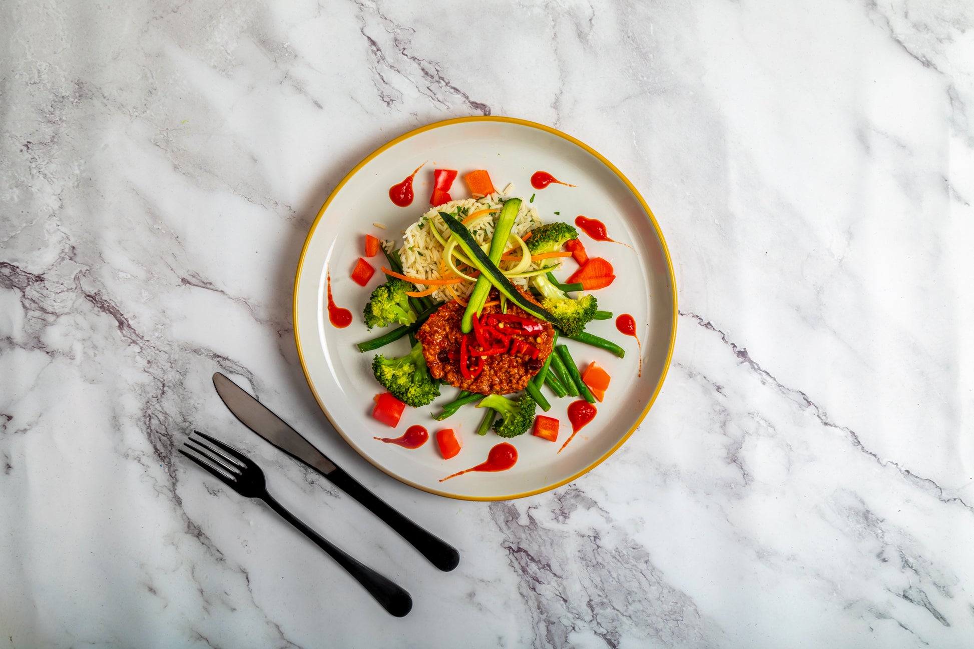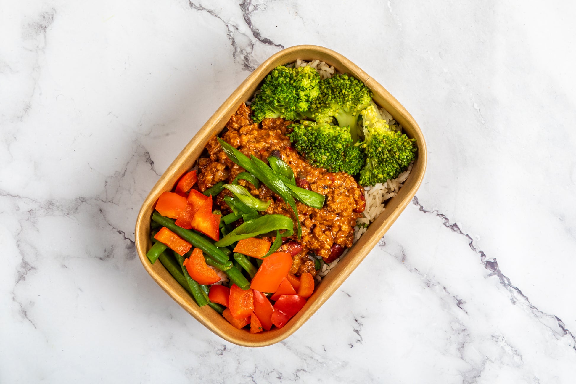 One of our best sellers, beef chilli our way! Lean beef, homemade sauce, beans with a fluffy rice & greens, comfort food, calorie conscious
