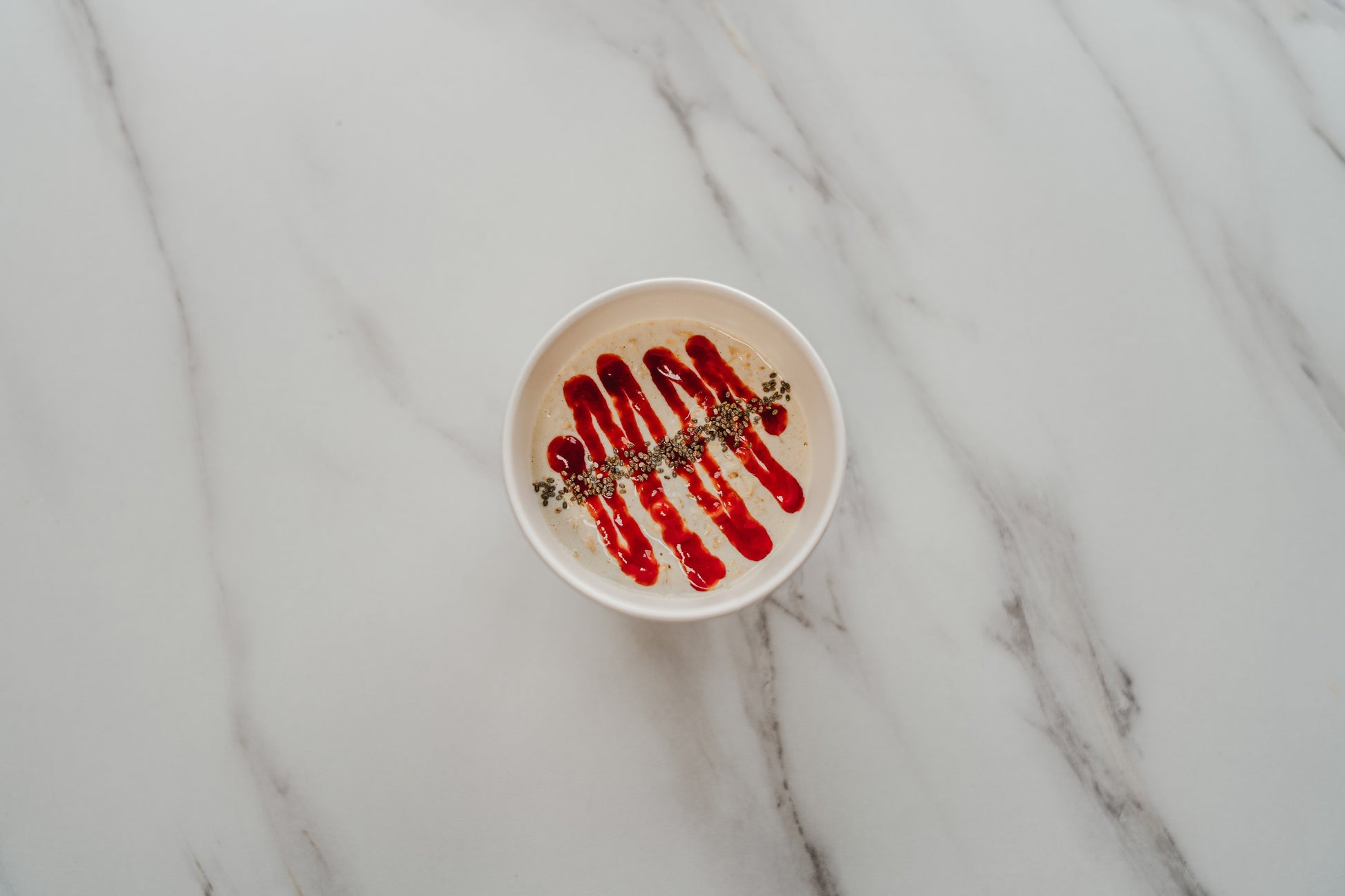 Creamy overnight oats, fresh strawberry base, with strawberry low cal coolie topping and strawberry garnish.