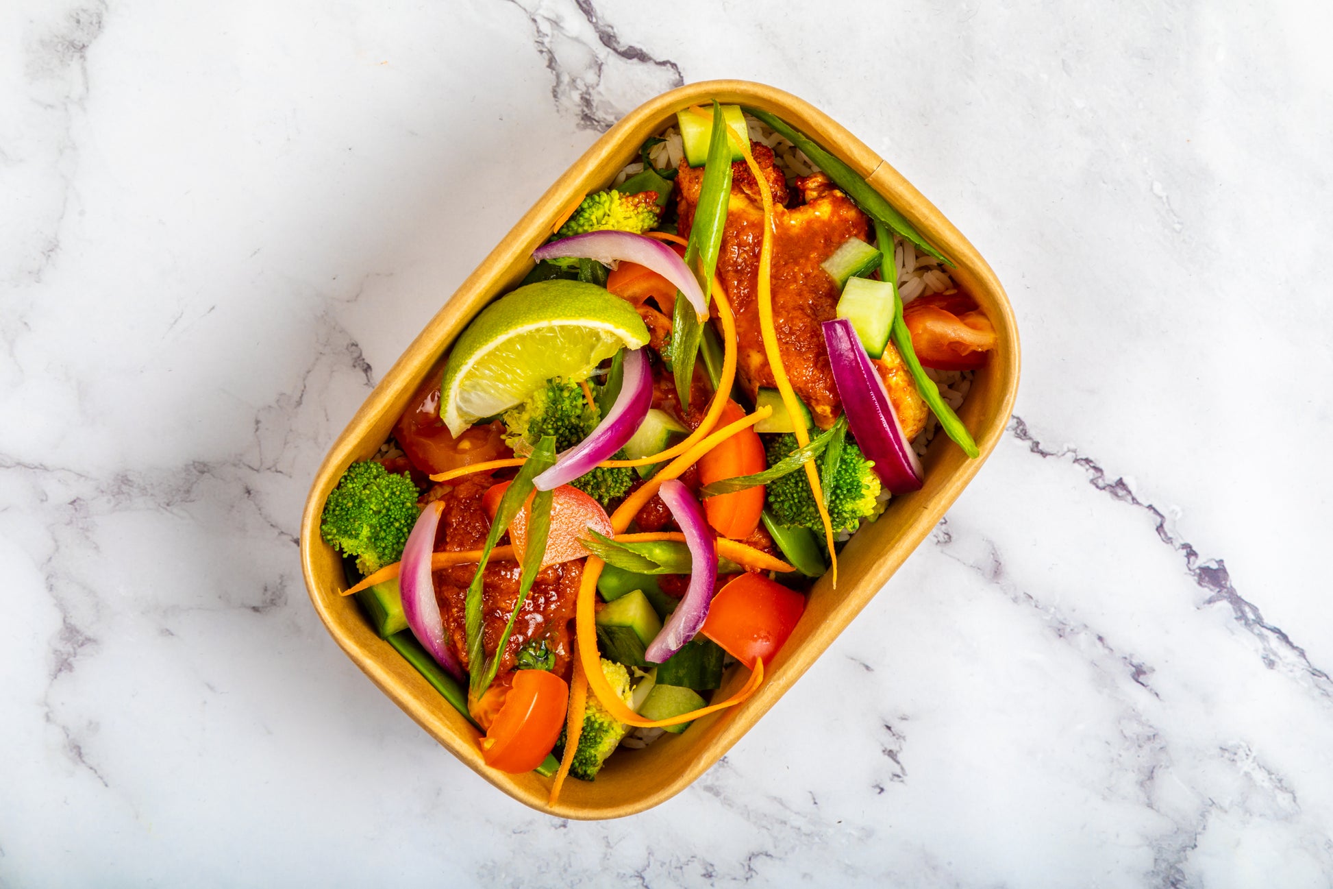 Brown Basmati Rice, Chicken, Thighs, Casseroled, Meat Only, Diced, Broccoli, Mange-Tout, Tandoori Paste, Cucumber, Onions